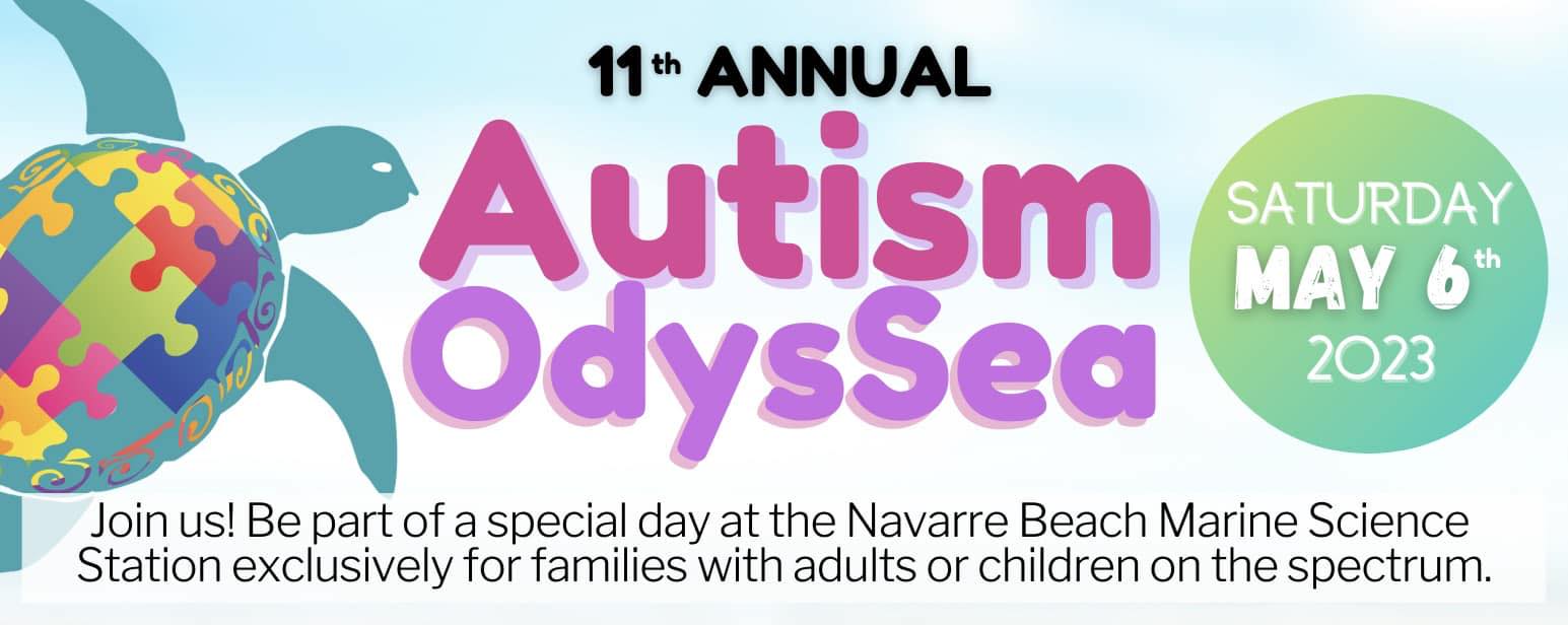Join the fun! Our 11th annual Autism OdysSea is scheduled for Saturday, May 4th. Autism OdysSea is a fun-filled day at the Navarre Beach Marine Science Station exclusively for families with adults or children with special needs. It’s a one-of-a-kind experience, with sea-themed activities that include touch tanks, sensory stations, crafts, kayaking, fishing, and animal encounters.